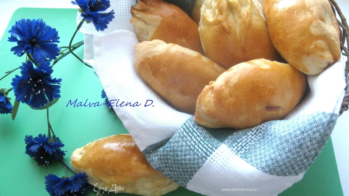 Выпекайте 20 – 25 минут до золотистой корочки. Через 15 минут после начала выпечки проверить пирожки. Вам может понадобиться чуть меньше или больше времени. Вынуть пирожки из духовки, переложить на дощечку, накрыть полотенцем и дать остыть.