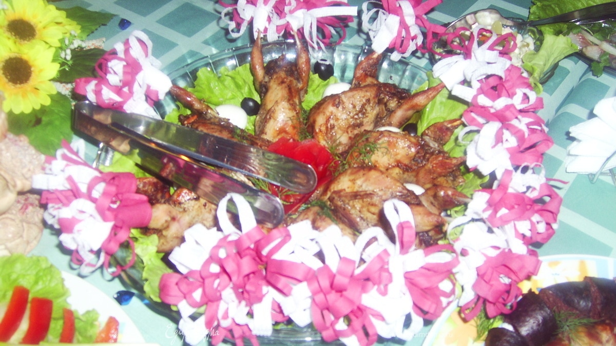 Запеченные перепела с овощами