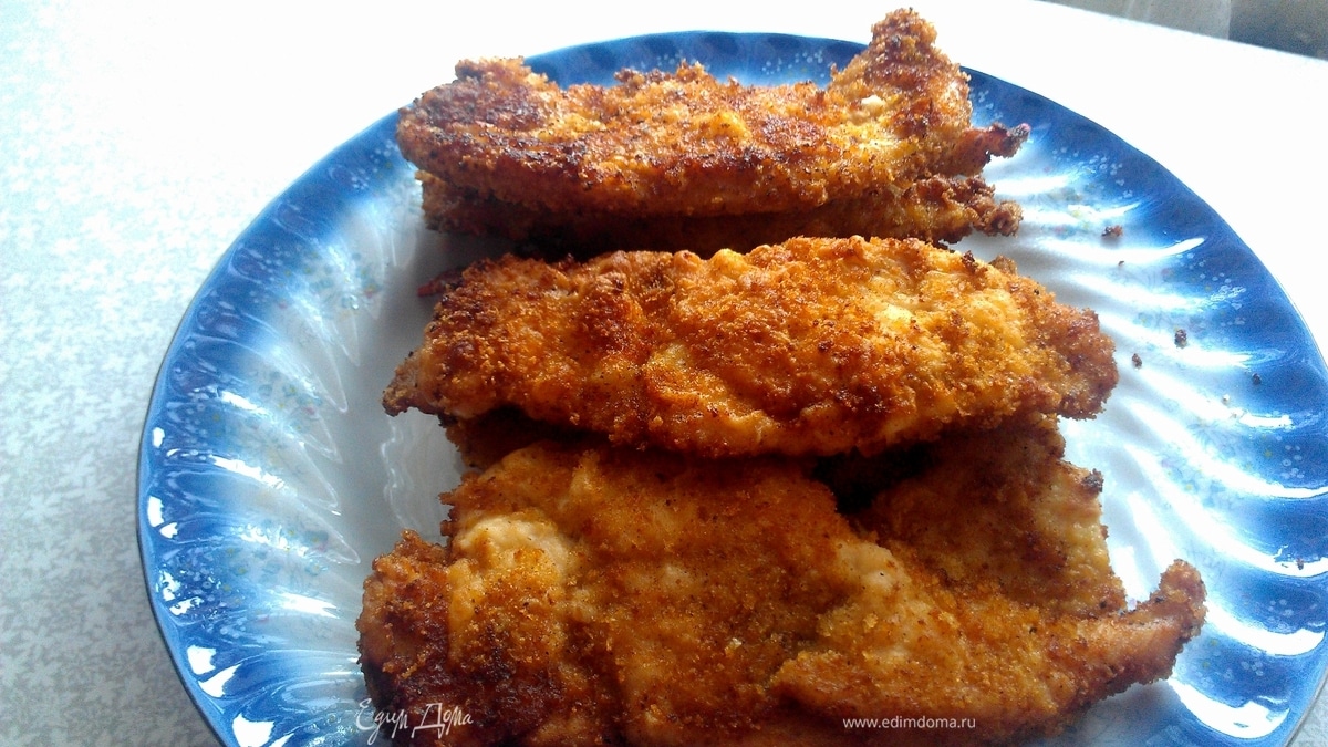 Куриное филе слегка обмокнуть в муке, затем в яичной смеси и панировочных сухарях. - Шаг 3