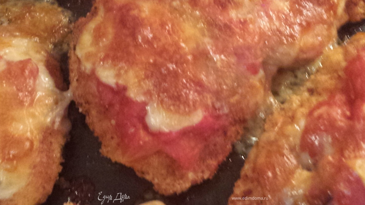 - Шаг 2Выложить грудки на противень. Обмазать каждый кусок томатно-грибным соусом. Сверху натереть моцареллу. Положить противень в духовку нагретую до 180 градусов и готовить 15 минут.