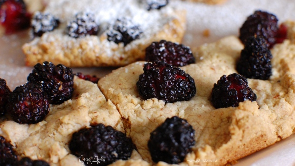 Из такого теста получится прекрасный корж для фруктового пирога. Чтобы масло лучше взбивалось, оно обязательно должно быть мягким. Не любите миндаль, замените его грецкими орехами, а если не нравится корица, добавьте ваниль. Вместо ежевики берите малину или любые другие ягоды на свой вкус.