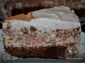 Вот такой торт в разрезе. Держать торт надо в морозильнике. Приятного аппетита в жаркий летний день!