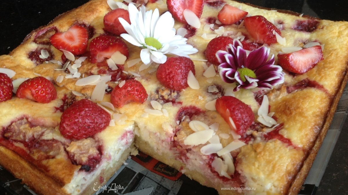 Остудите. Посыпьте миндальными лепестками и украсьте клубникой. - Шаг 12