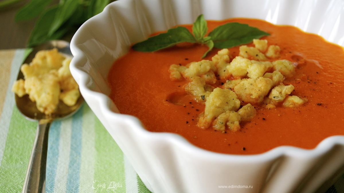 Холодный красный суп с ароматной крошкой
