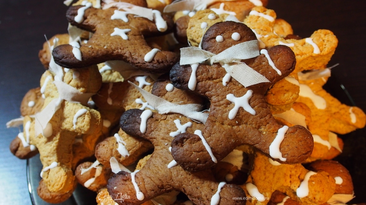 Выпекать 10-15 минут при температуре 180°С. Пока пряничные человечки остывают, взбить в крутую глазурь яичный белок и сахарную пудру. - Шаг 4