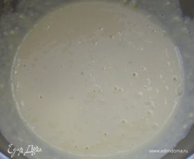 Заливка: йогурт взбить с яйцом, добавить натёртый на мелкой тёрке сыр, посолить, поперчить и хорошо перемешать.