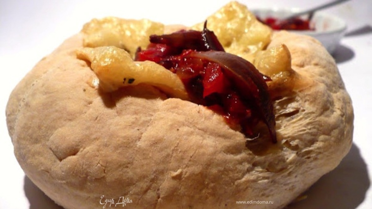 Ставим в разогретую до 190 градусов духовку и выпекаем 20 минут. Затем оперативно вынимаем, сыр надрезаем крест-накрест и раскрываем "лепестки" в сторону. Отправляем ещё на 10-12 минут в духовку.
