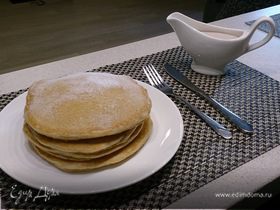 Затем жарить блины на хорошо разогретой сковороде, тесто нужно каждый раз перемешивать перед тем, как наливать на сковороду. Готовые блинчики подавать к столу можно и со сметаной, и с вареньем, и со сгущенным молоком. Приятного вам аппетита!