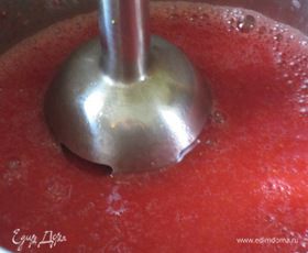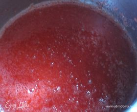 Поставить на огонь,довести до кипения и варить 5 минут. Снять с огня, добавить хорошо отжатый желатин и перемешать до его полного растворения.