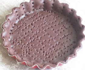 Наколоть тесто вилкой,положить пергамент и насыпать сухую фасоль. Выпекать в разогретой до 180 °С духовке 15 минут. Затем удалить пергамент с фасолью и выпекать ещё 5 минут. Остудить.