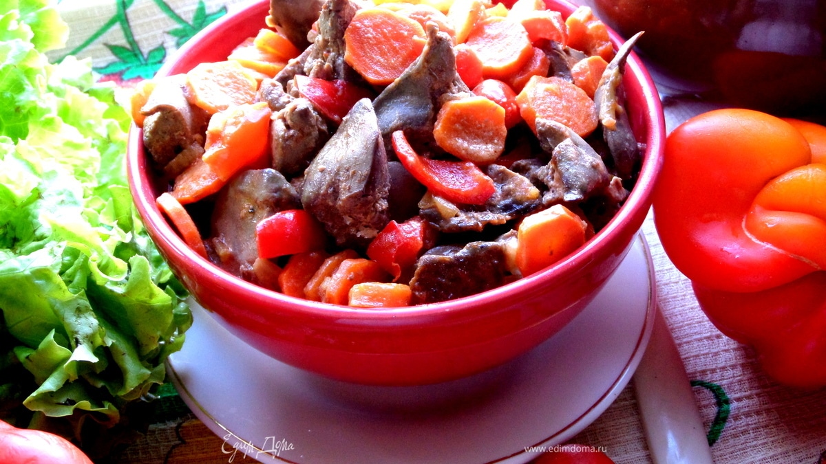 Печень в горшочке в сметанно-томатном соусе с овощами