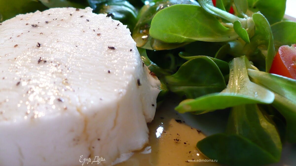 Сыр достать из духовки, отправить к салату. Полить мёдом. Подавать тут же!