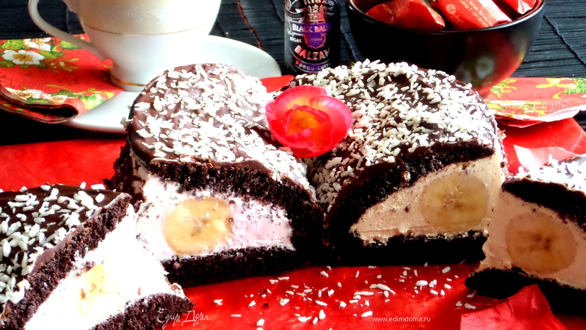 Укладываем бананчик...Не забудьте промазать кремом изгиб банана,иначе при разрезании будет видна пустота! - Шаг 19