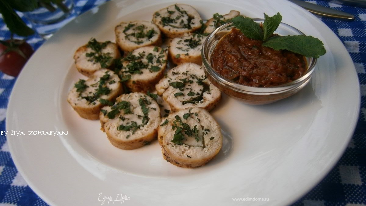 Угощаю вас вкусным и простым блюдом - куриным рулетиком с мятой и томатно-мятным соусом!
