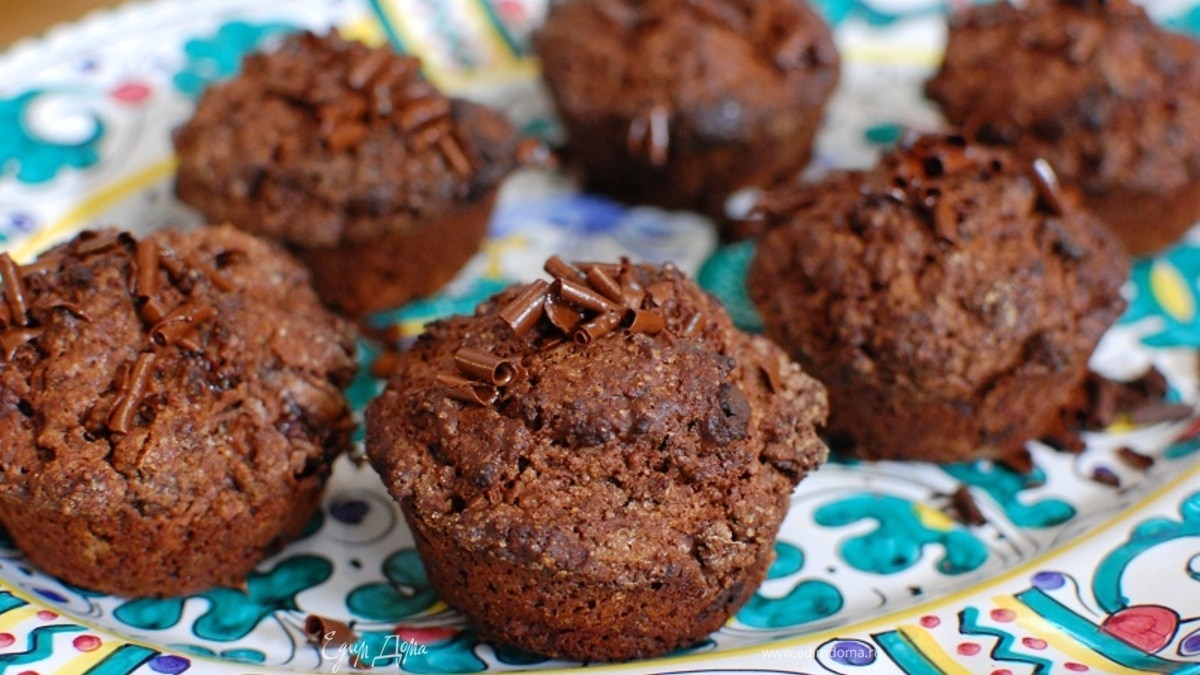 Оставшийся черный шоколад натереть стружкой и посыпать готовые маффины.