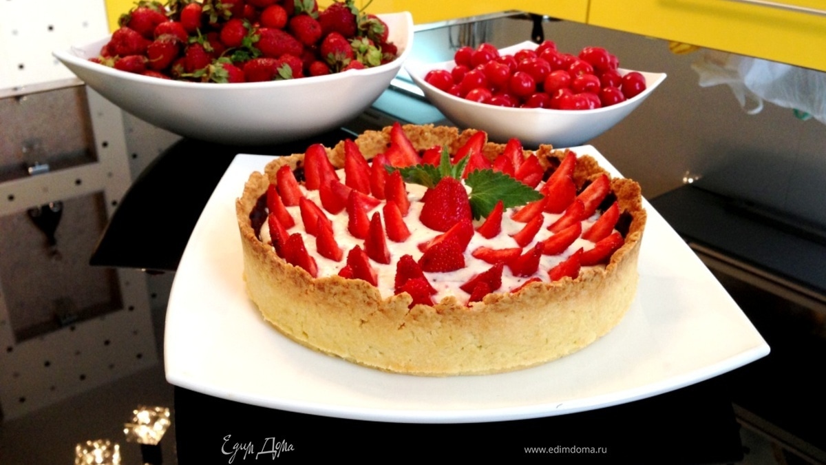 Клубничный тарт с творожным кремом и шоколадом