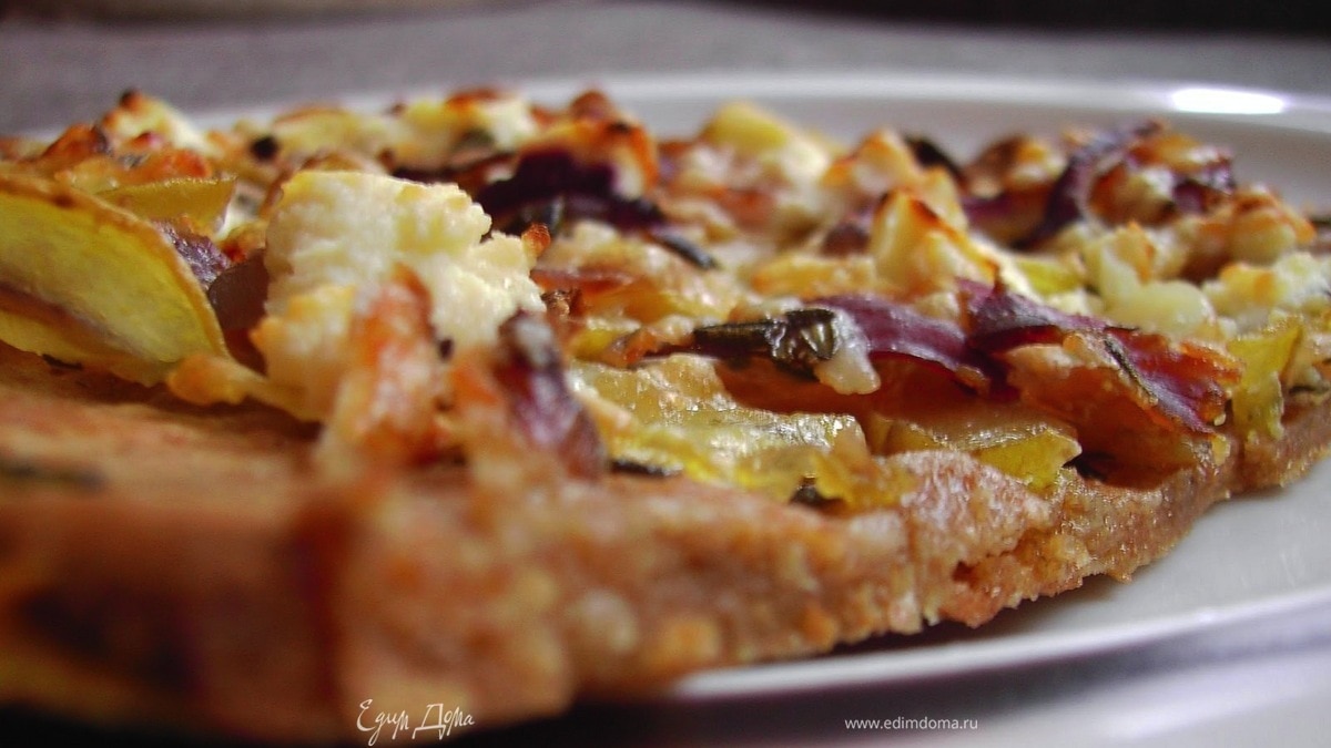 Картофельная пицца с чесноком, козьим сыром и розмарином