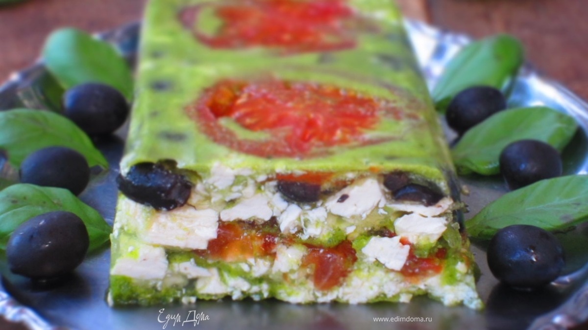 Повторить слои пока не закончатся ингредиенты.Накрыть форму пищевой плёнкой и поставить в холодильник минимум на 4 часа.Нарезать на тонкие ломтики и подавать.Приятного аппетита:))