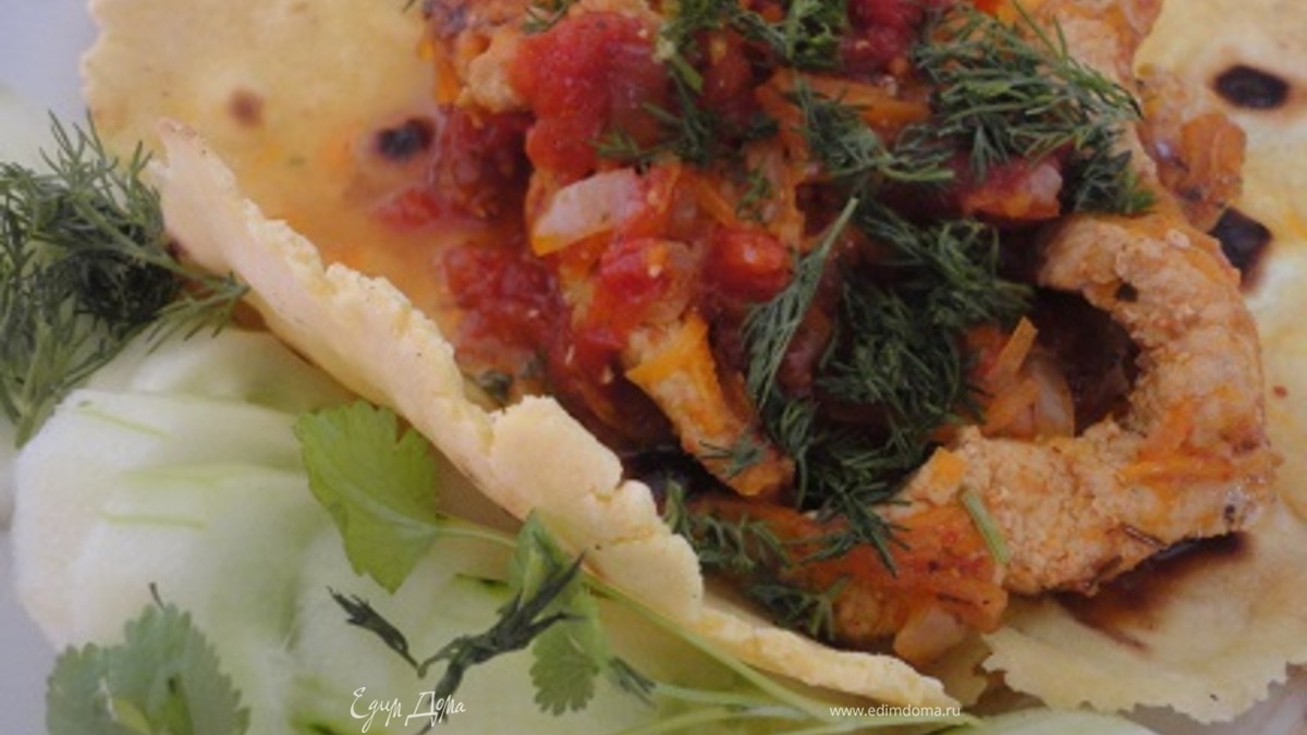 Это популярное блюдо мексиканской кухни. Существует много вариантов: в плане использования сортов мяса и разнообразия овощей. Но общее одно - подается это блюдо с тортильяс - кукурузно-пшеничными лепешками. Я пекла их сама. Было сложно с кукурузной мукой. Можно купить готовые. Но я еще раз хочу попробовать испечь, но уже с добавлением пшеничной муки.