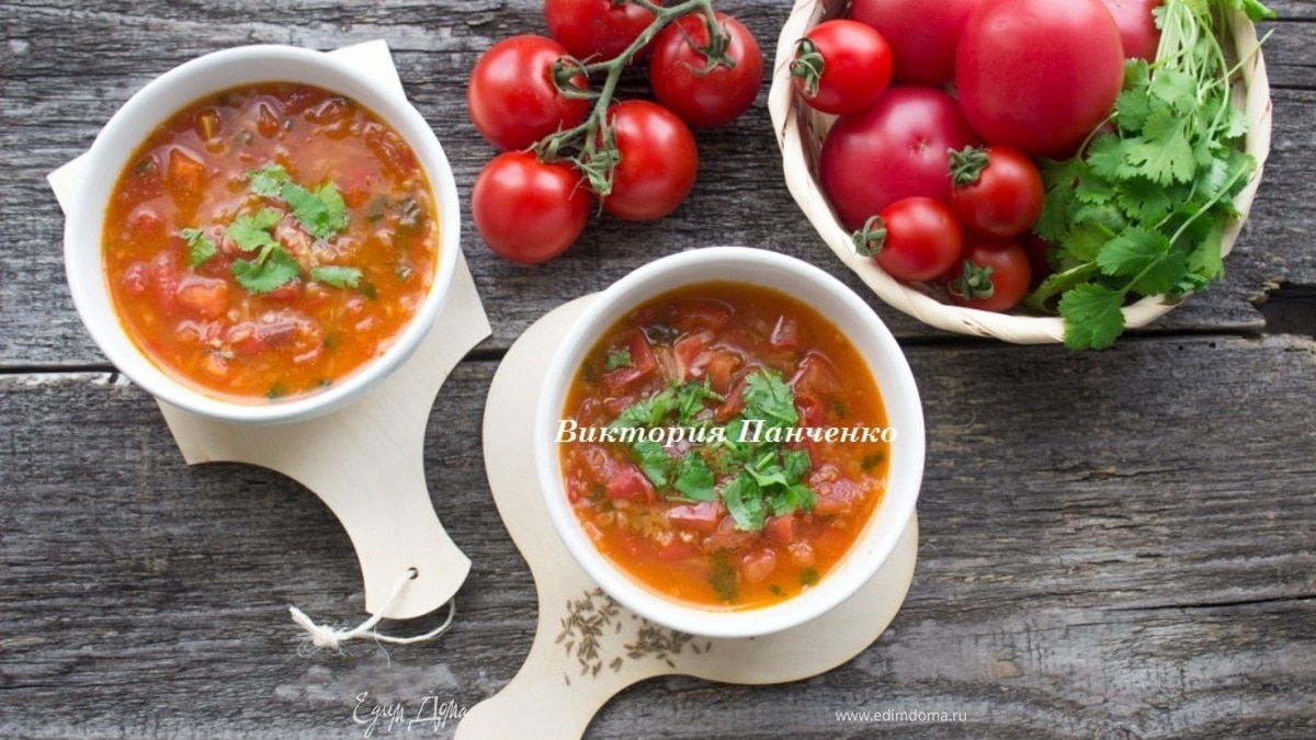 Снять суп с огня и охладить его в глубокой миске, наполненной водой и льдом. После чего влить в суп лимонный сок, добавить остатки нарубленной кинзы, перемешать и разлить по тарелкам.