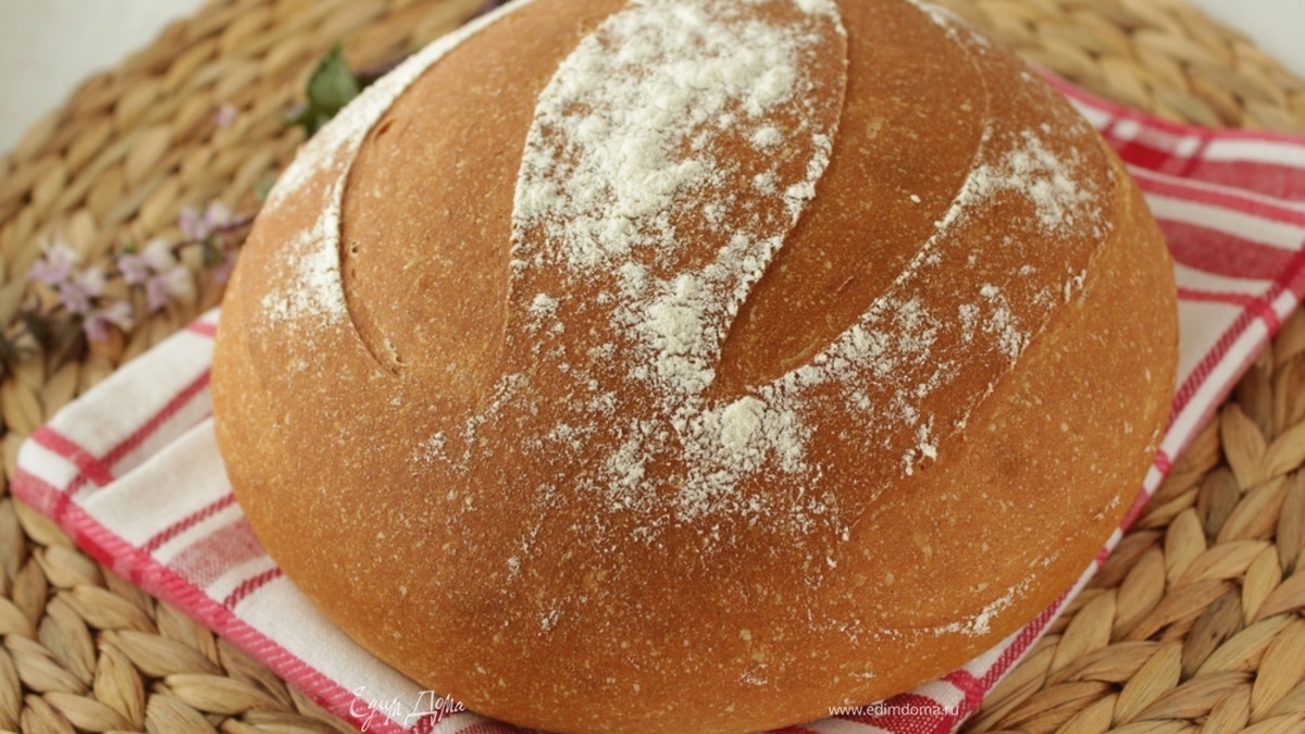Духовку прогреть до 240 градусов. В низ духовки поставить емкость с водой и выпекать хлеб первые 15 минут с паром. Через 15 минут емкость убрать, снизить температуру до 190 градусов и выпекать еще минут 40-45. Готовый хлеб остудить на решетке. Полотенцем не накрывать. - Шаг 5