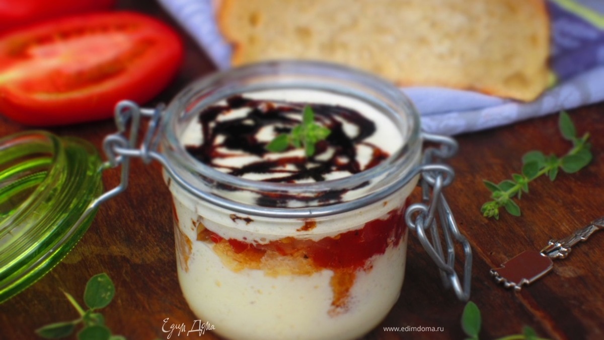 Мини-тирамису с томатным чатни и бальзамическим сиропом