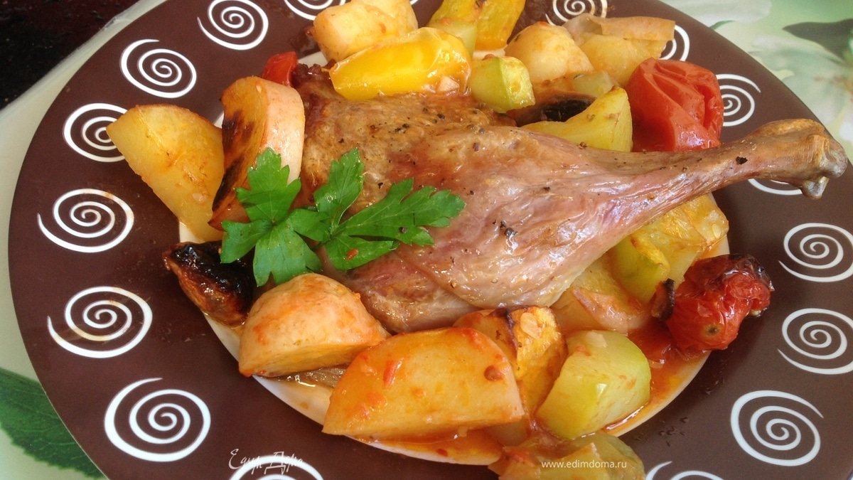 Сверху выложите утиные ножки. Готовьте в духовке 45-50 минут. - Шаг 9