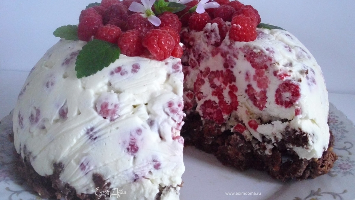 Снять плёнку и накрыть чашу блюдом, осторожно перевернуть. Украсить малиной и листиками мяты. - Шаг 7