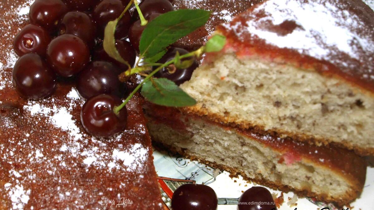 Достать из формы, переложить на блюдо. Украсить сахарной пудрой, свежей вишней. - Шаг 7