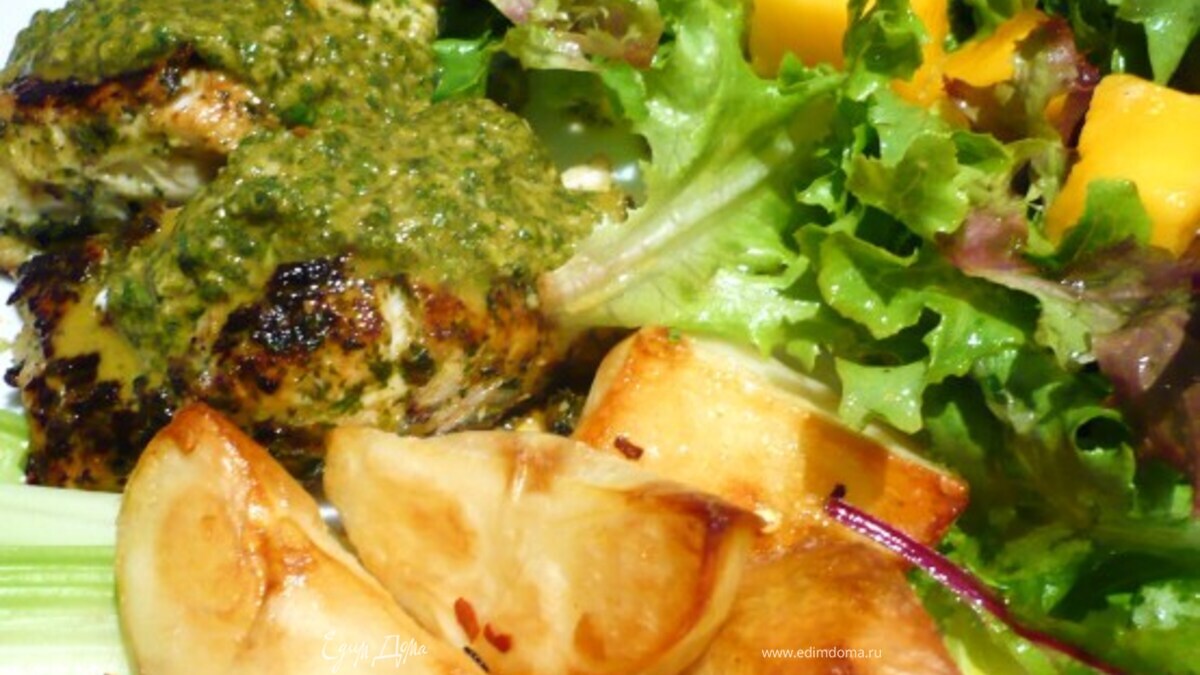 Или просто с салатом с добавлением кусочков манго, чили, натертого имбиря, цедры и сока лимона (или лайма) и оливкового масла. В качестве идеи для гарнира - кус-кус простой, с шафраном или "Кус-кус с фенхелем и тмном" ссылка на рецепт