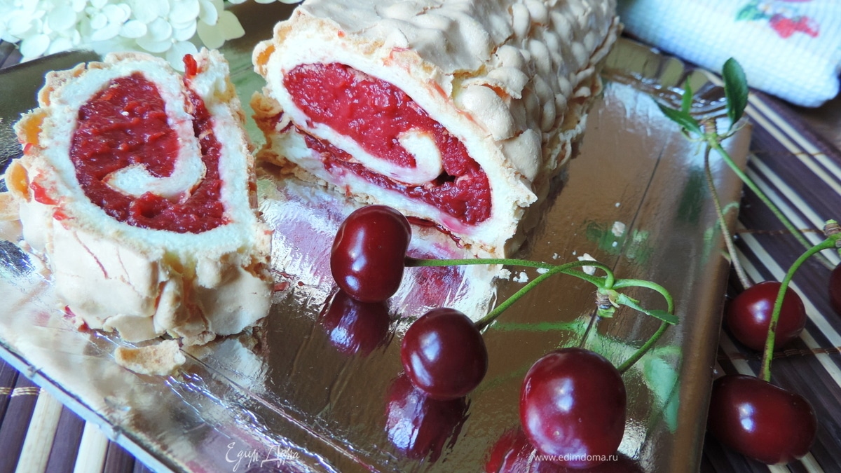 Меренговый рулет с вишневым курдом