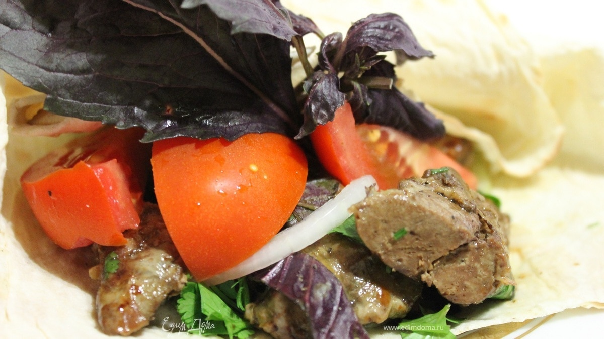 В 5 км от нашего города, есть армянский поселок. Там очень много разных кафе. И в каждом из них, готовят мой любимый тжвжик.Это так вкуусно, что невозможно оторваться. Говяжья печень в жировой сетке, жареная на мангале и завернутая в лаваш с луком и зеленью. Я решила приготовить в духовке, получилось не менее вкусно.)) Единственный нюанс, когда нужно переворачивать печень, в форме образуется очень много жидкости, ее нужно слить и опять отправить в духовку. Угощайтесь, друзья!))