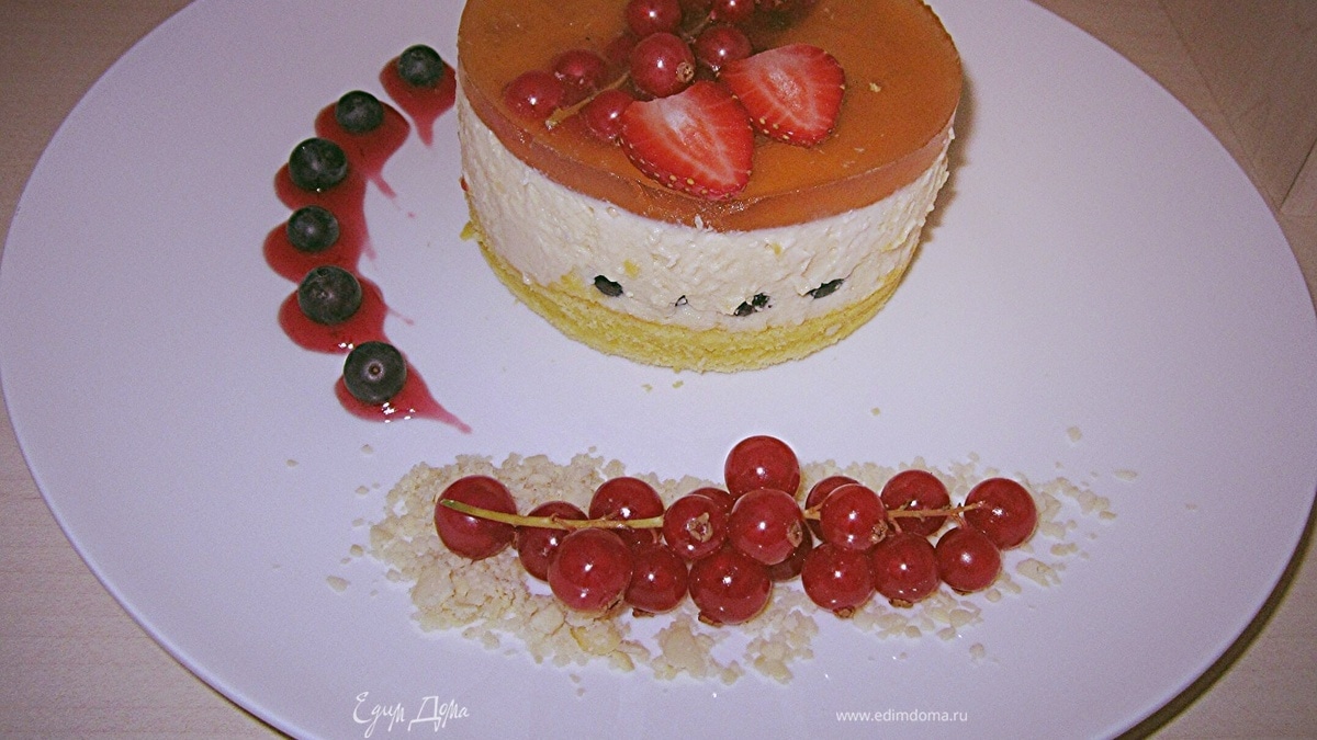 Черничный чизкейк на луковом бисквите и желе из совиньона