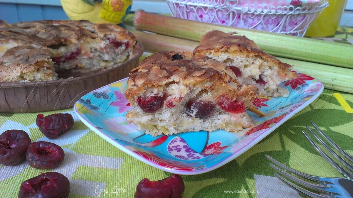 Шарлотка с ревенем, вяленой вишней и пряностями
