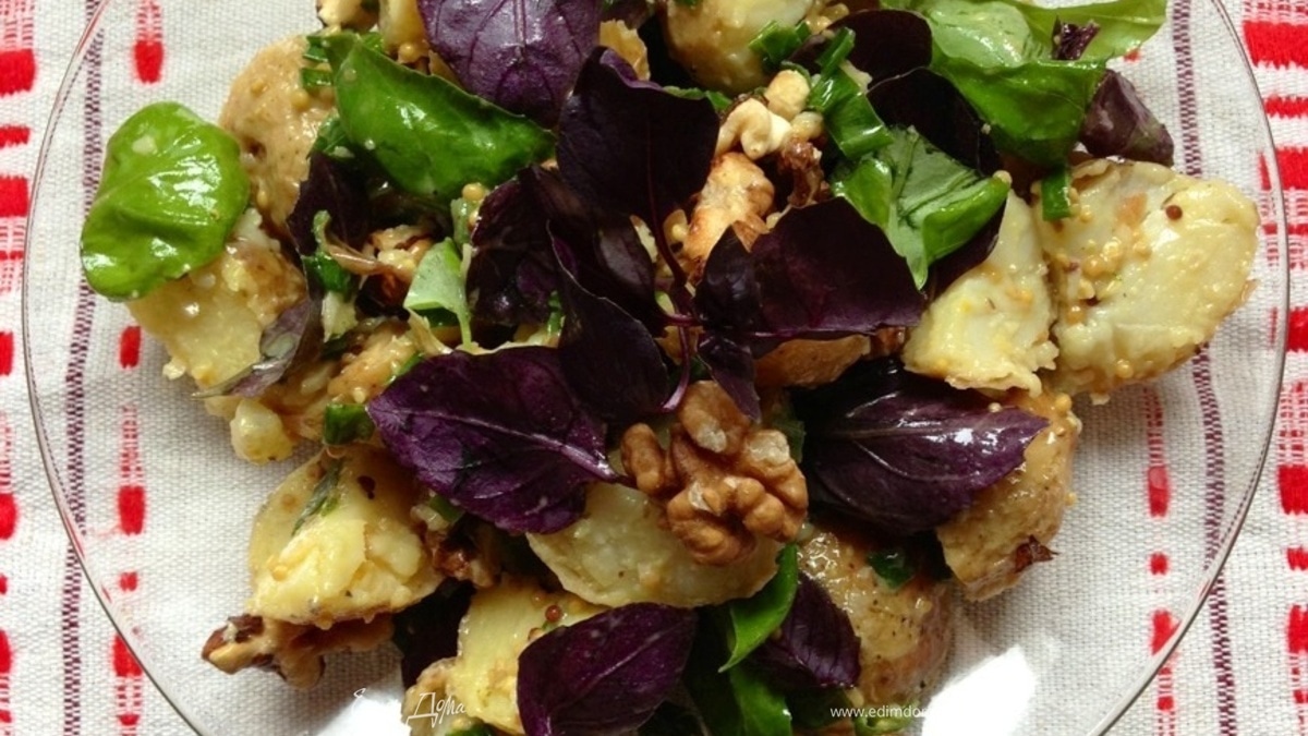 Перед подачей добавляем грецкий орех и базилик. Перемешиваем и готово!!! Отменный салатик!! Пробуйте!