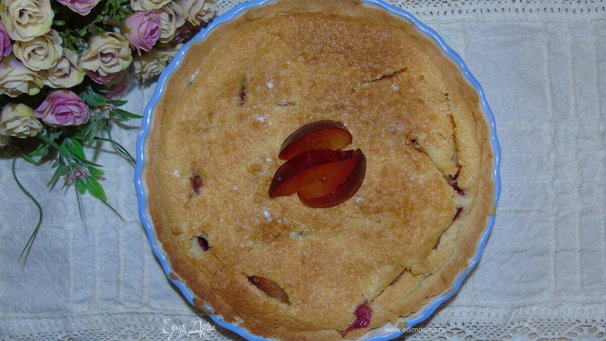Тесто выложить в форму . - Шаг 8Положить сливы и залить заливкой.