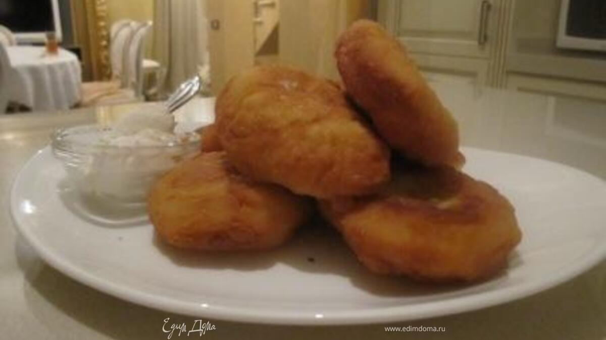 - Шаг 1Приготовление теста: 1.Все ингредиенты, кроме муки, поместить в глубокую чашку и взбить миксером в течение одной минуты. 2.Просеять в чашку сначала 4 стакана муки, затем перемешать и постепенно добавить еще один стакан. Тесто не должно быть крутым (очень нежное), см. фото. 3.Закрываем чашку и оставляем в теплом месте 30-40 мин. 4.На присыпанную мукой доску кладем часть теста. Руками разделываем его на порции, обваливаем очень мягкие кусочки теста в муке(см. фото) , в центр кладем одну из предложенных начинок, защипываем края пирожка(тесто нежное, не режется). Кладем пирожки на присыпанный обильно мукой лист. Раскладываем их подальше друг от друга. 5. В сковороду наливаем растительное масло, достаточно сильно прогреть и сначала пирожок обтряхнуть от муки, даже немного подуть на него (они очень нежные в руках) и в сковороду и так каждый. И жарим до золотистого цвета с 2х сторон. Масло для жарки – обильное кол-во. Тогда они не будут жирными. См.фото. 6. Выкладываем в кастрюльку или сразу на блюдо. Даем немного подышать и остыть. Хранить в закрытой кастрюльке, после остывания. Жарить лучше при закрытых дверях и с открытым окном. Все таки пирожки есть пирожки, от запаха никуда! Поэтому тщательно стряхивать муку с пирожка перед жаркой.. Потом подать уже в столовую. Приготовление начинки: 1.Капусту тонко нашинковать, лук порезать на мелкие кубики, морковь на терку. 2.Обжарить на растит. масле лук, морковь-3-4 мин, добавить капусту свежую, перемешать и потушить 2мин, затем добавить томат и квашеную капусту, соль и черный молотый перец. Перемешать, тушить на медленном огне 10 мин.Охладить. 3.Начинку из яблок готовим просто нарезая небольшое кол-во яблок на кубики тонкие и мелкие, выкладываем сразу на лепешечку и посыпаем сахаром с корицей и защипываем в пирожок). 4.Начинки из творога: тщательно перемешать все в однородную массу (сладкая и соленая разумеется по отдельности, в соленую очень мелко режем зелень). 5.Картофельная: Картошку отварить, слить воду, просушить на огне в кастрюле. Размять в пюре. Лук мелко нашинковать, обжарить в масле(слив. или растит.) до золотистого цвета , добавить в пюре, размешать , посолить и поперчить по вкусу. 6.Начинки могут быть различными, это самые подходящие и любимые. Можно и мясную, грибную, вареные яйца и зеленый лук, густое повидло. С капустой,картошкой, соленым творогом в дополнение хорошо идет сметанка. К сладкому творогу и яблочкам - мед!