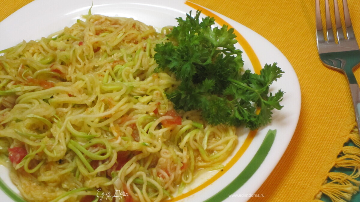 Продолжается сезон кабачков. Кабачок - универсальный овощ, из которого можно приготовить даже ... спагетти. Спагетти из кабачков может быть как гарниром для мясных блюд, так и самостоятельным блюдом. Рецепт взяла из Интернета.