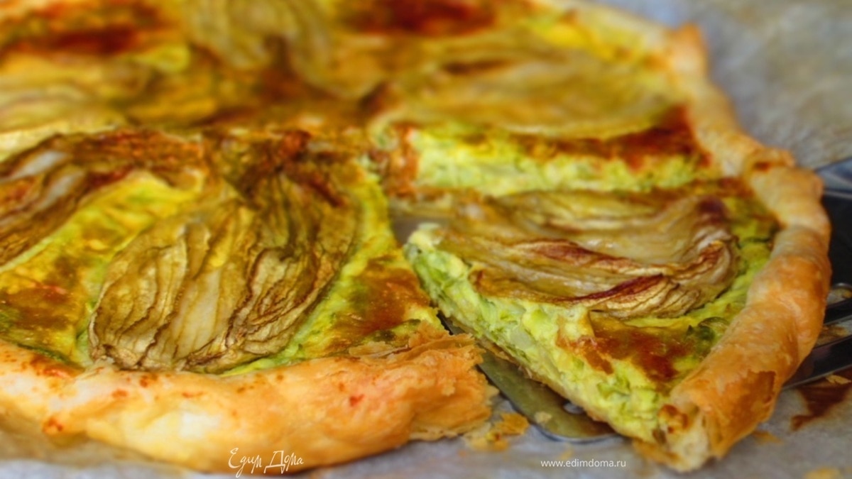 Овощной киш с сыром и цветками цукини