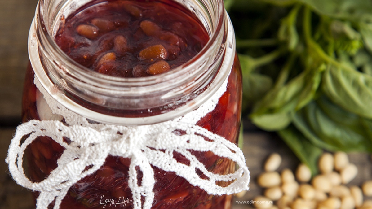 Клубничный джем с базиликом и кедровыми орешками