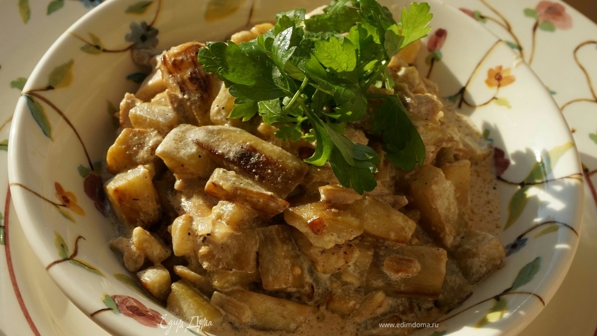 Баклажанички в сливках ....мммм! И посуда ваша мне очень нравится.😊