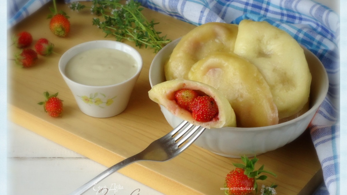 Очень вкусные вареники,Зариш😋с домашней клубничкой,да ещё и с таким оригинальным соусом😃😍