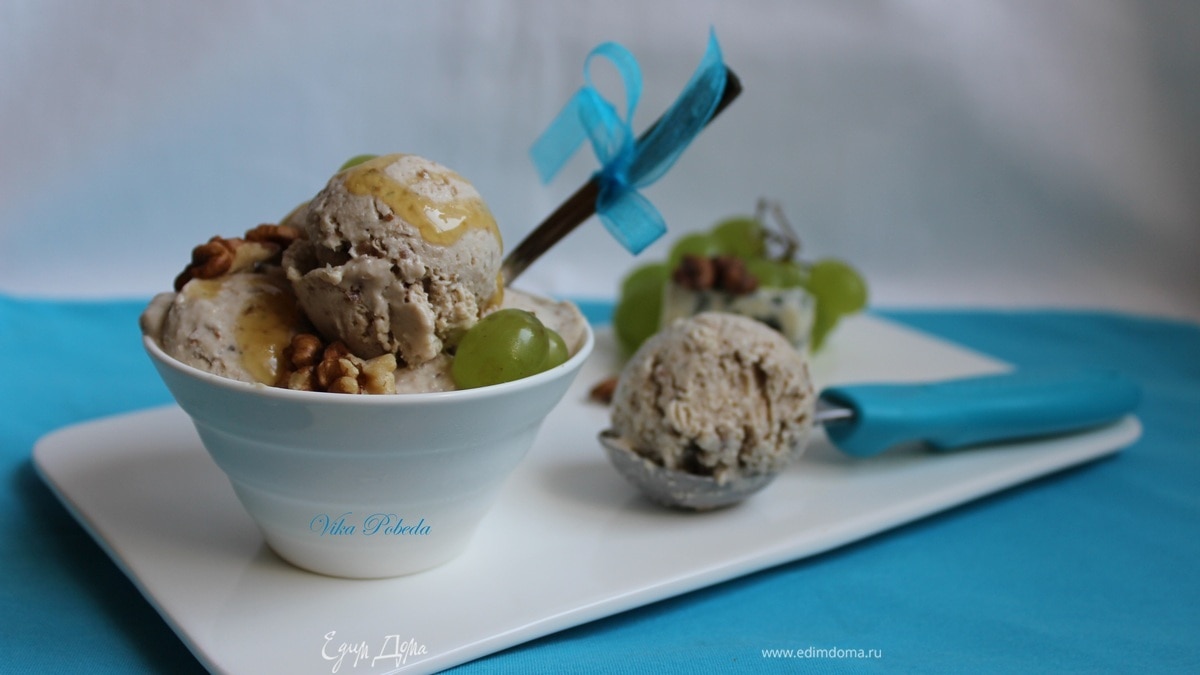 Грушевое мороженое с голубым сыром и грецкими орехами