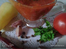 что угодно,но только не аджика.Это я Вам как жительница Грузии говорю.Можно назвать сацибели(соус из помидор с болгарским перцем).