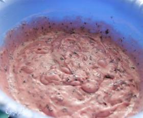 Масло взбить с сахарной пудрой, сгущенкой и смородиной.