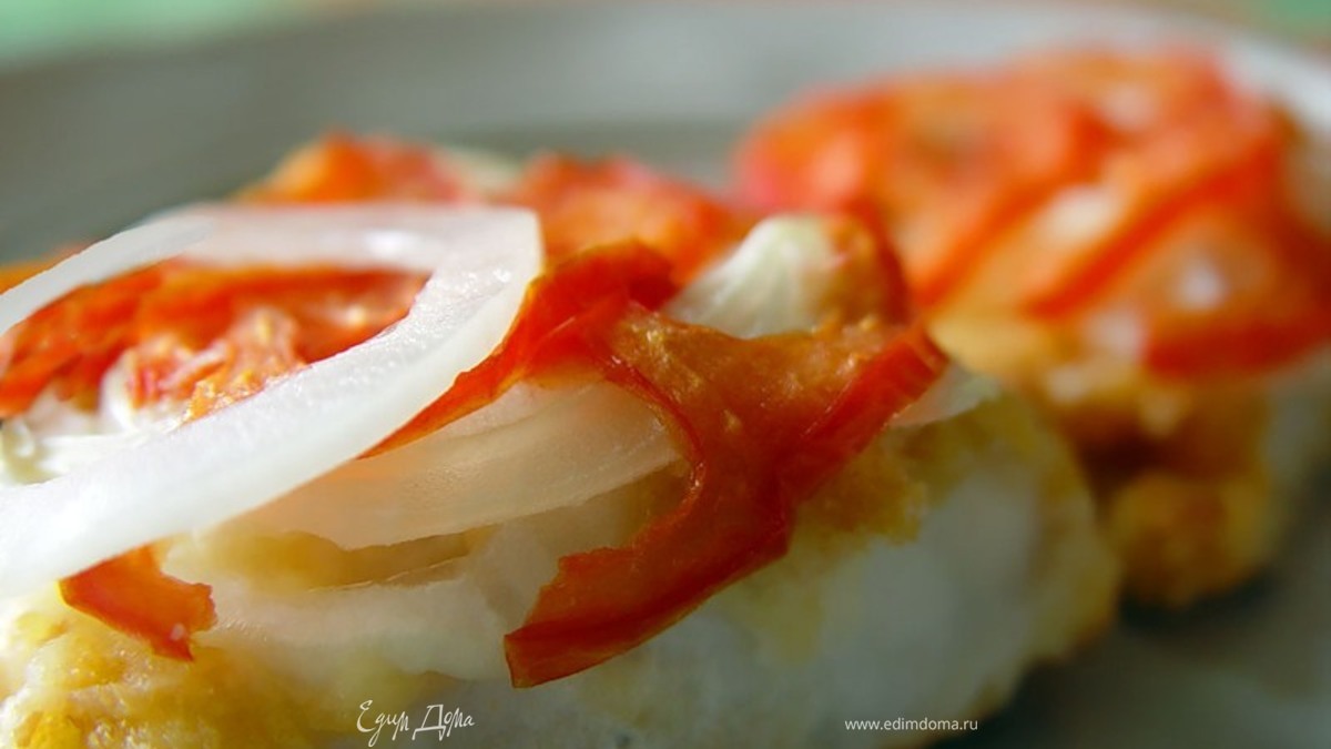 - Шаг 1Рыбу нарезать, посыпать солью и обваляв в муке жарить на масле до образования корочки. Помидоры нарезать кружками, уложить на сковороду (на которой жарилась рыба) и слегка поджаритъ. Помидоры уложить на рыбу, посыпать нашинкованным сырым луком, перцем и зеленью. Подавать в горячем виде.