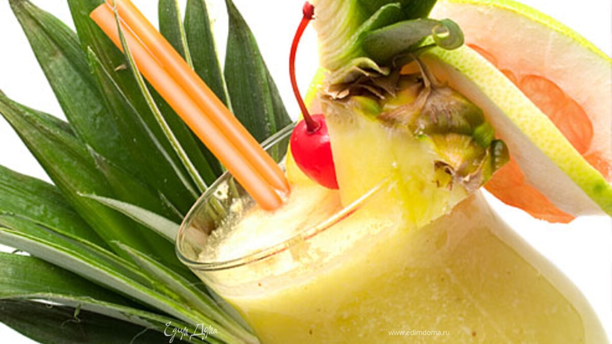 - Шаг 1Положите в шейкер колотый лед, налейте светлый ром, кокосовый ликер и ананасовый сок. Слегка потрясите для смешивания. Сцедите в большой стакан и украсьте коктейль вишней и дольками ананаса.