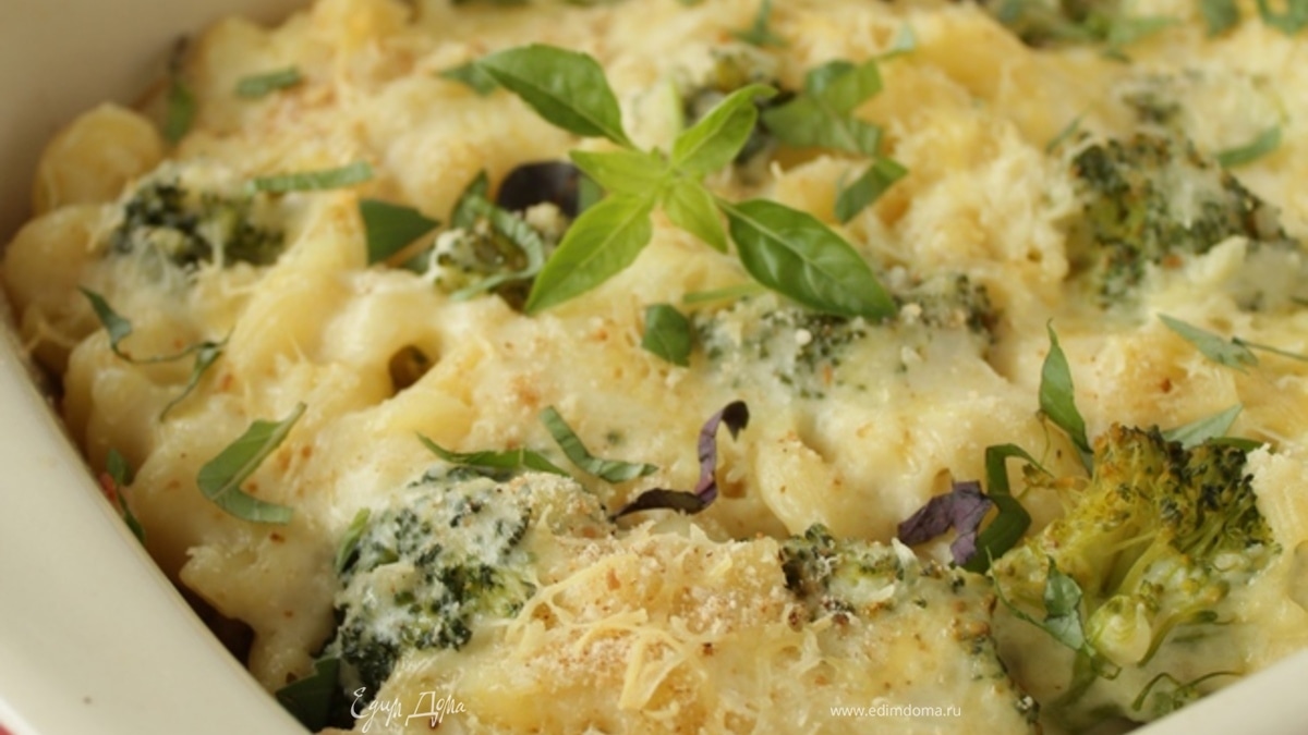 Гратен из макарон, куриной грудки и брокколи