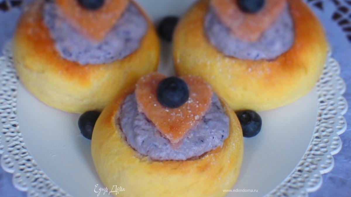 Мини-бриоши с творожно-черничным кремом