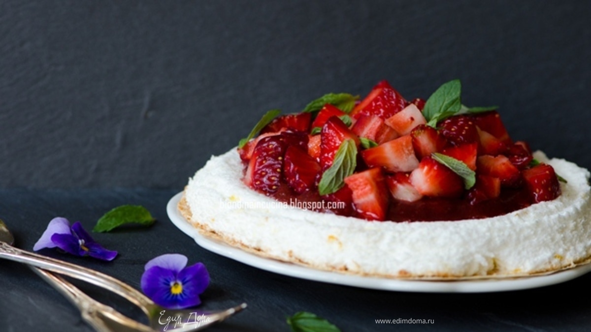 Торт "павлова" с клубникой и мятой